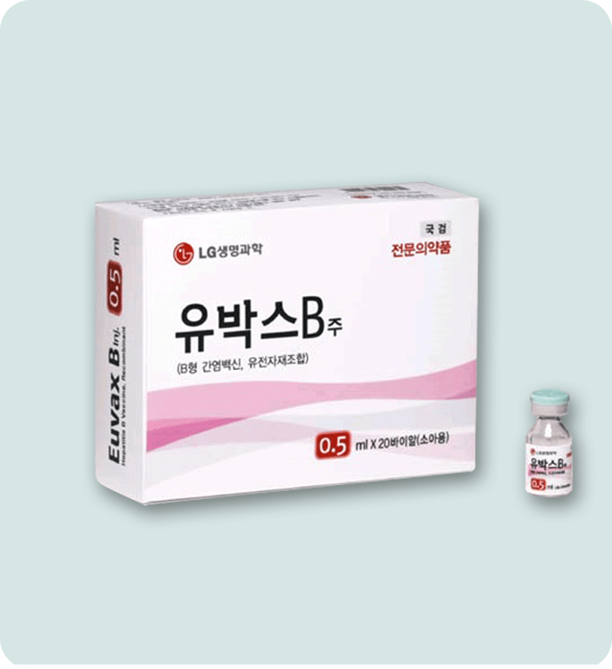투명 바이알에 들어 있으며, 주사용수로 녹여 사용하는 백신입니다.