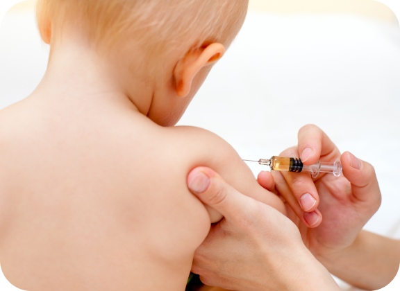 접종 전 의료진이 백신을 조제하여 주사로 투여합니다.